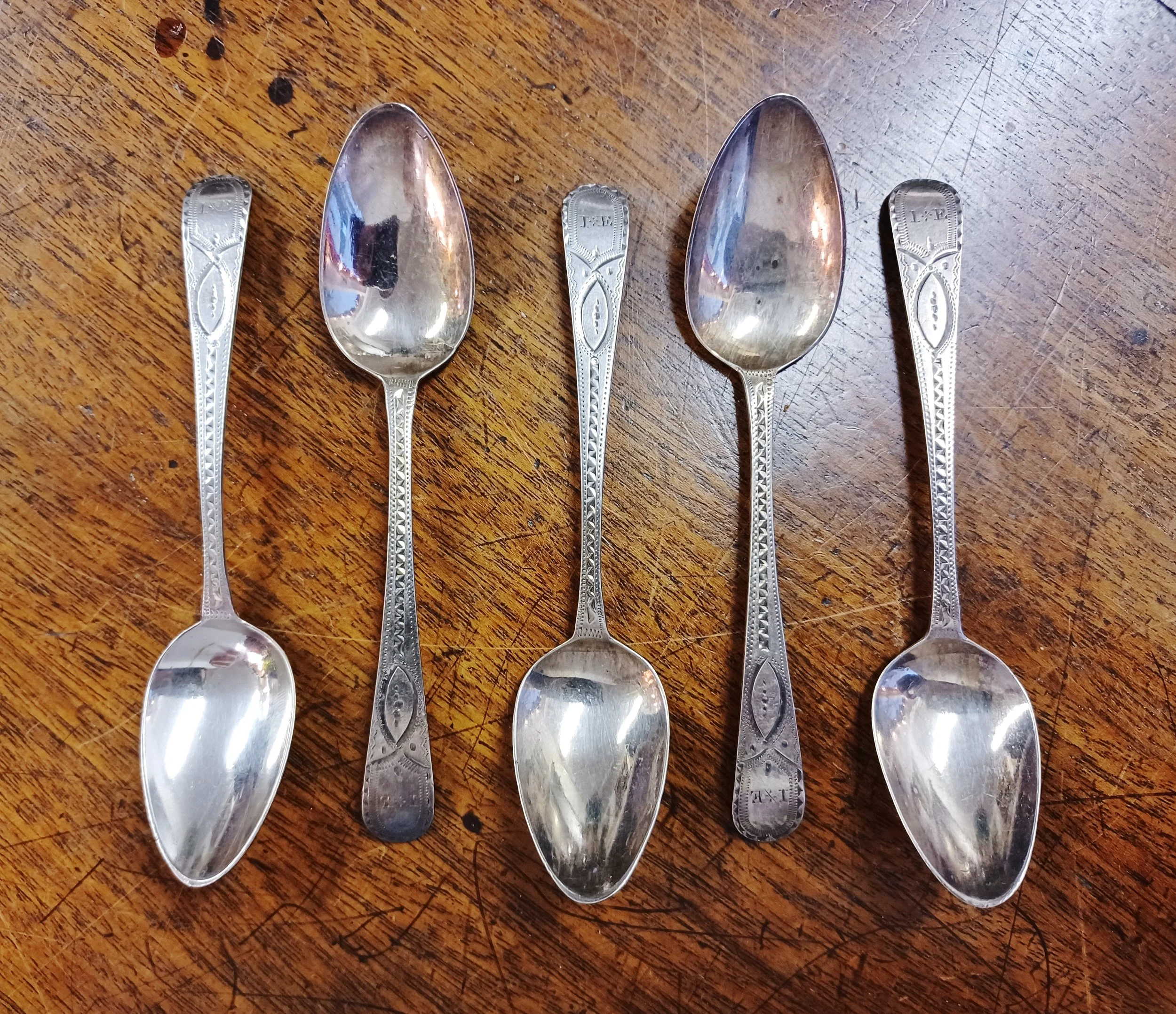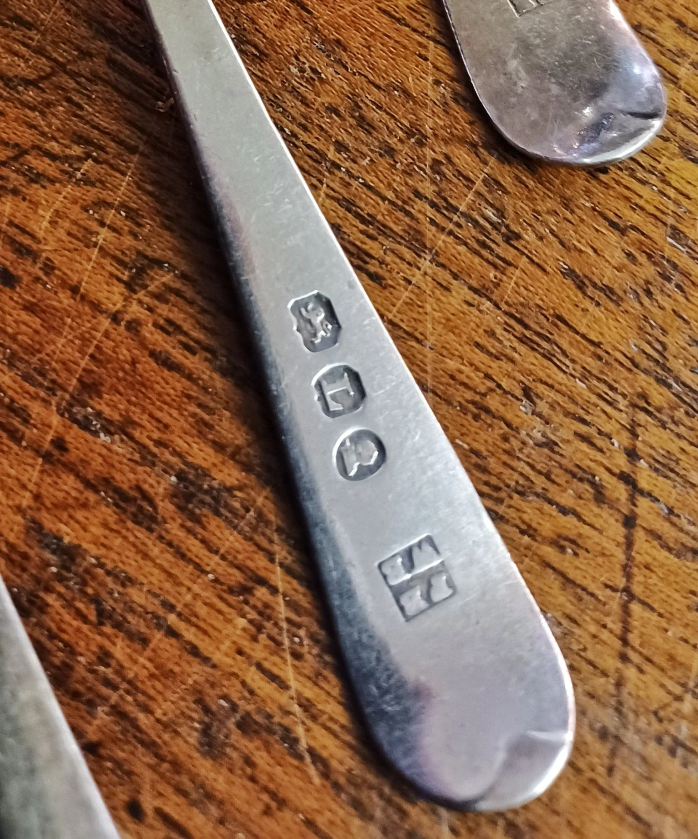 These weight 65.37 grams and are 12cm x 2.5 cm. Hallmarks dated London 1806 but oddly are missing the leopards head for London, however we’re comfortable it is London because of the markers mark. The makers mark is for Peter and William Bateman who worked together from 1805 to 1814 in London. Peter Bateman is the second son of world renowned Hester Bateman (1709 - 1794), the most famous 18th century English female silversmith, with William Bateman being a nephew to Hester.