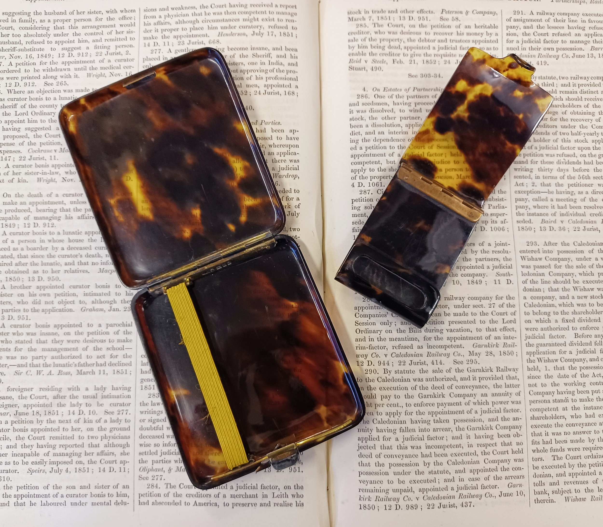 Lovely item in good order, small crack near the clasp that doesn’t affect it’s working. Unusual the hinge on the cigarette case is Silver Gilt and hallmarked.